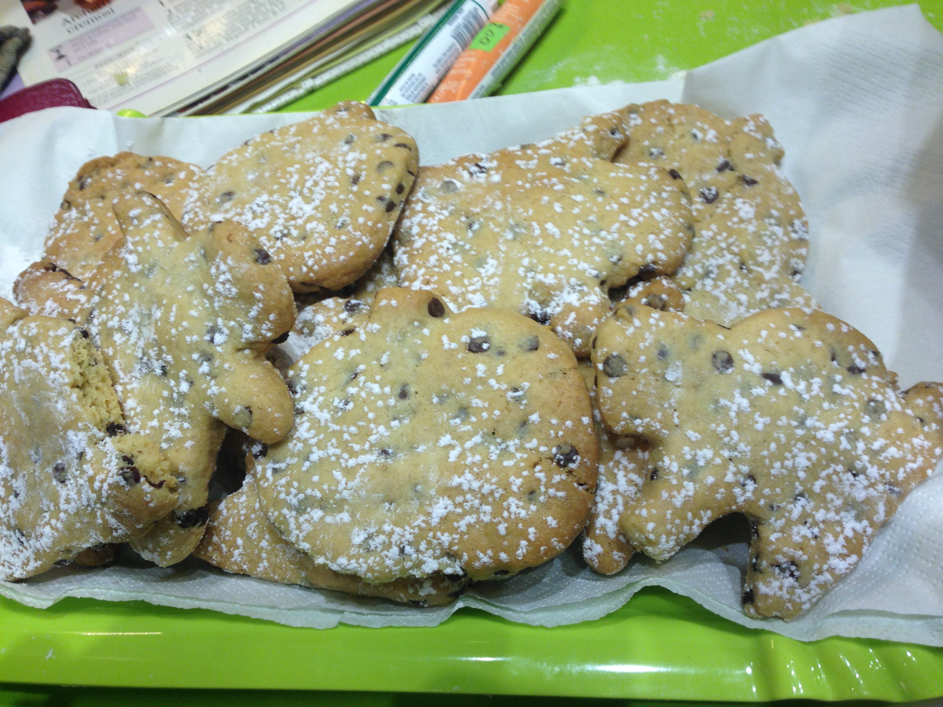 Incredibile come si sappiano autodisciplinare, non un lamento, non un capriccio, solo il desiderio di vedere la loro opera completata. La mia cucina al momento non ha nulla del suo squillante verde originario, adesso è meravigliosamente coperta di farina come fosse neve, in forno stanno prendendo corpo fragranti biscotti e le faccine delle bambine, arrossate dal calore della stanza che sa di zenzero e cannella, sono irresistibili, nei loro occhi solo curiosità per il risultato, di chi saranno i biscotti più belli? Chi avrà saputo fare il dolcetto più buono?