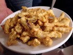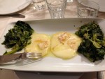 Il menù si apre quindi con le eccellenze della produzione locale in fatto di salumi, formaggi, mozzarelle nella mortella, verdure cotte, crude, grigliate, sformatini, fiori di zucca, melanzane, zucca e cipolle, peperoni ‘bmuttunati, un trionfo di sapori per palati molto golosi. Ma questo, anche se ricco, saporito e abbondante, è soltanto l’inizio, il menù prosegue con le tipiche paste cilentane, cavatielli, fusilli, con sughi di carne o verdure, non mancano le minestre e poi si passa alle carni. E’ un settore che frequento poco, ma dalla brace arrivano profumi invitanti di arrosti misti e la mia attenzione è catturata dal caciocavallo grigliato servito con verdura saltata, una vera poesia.