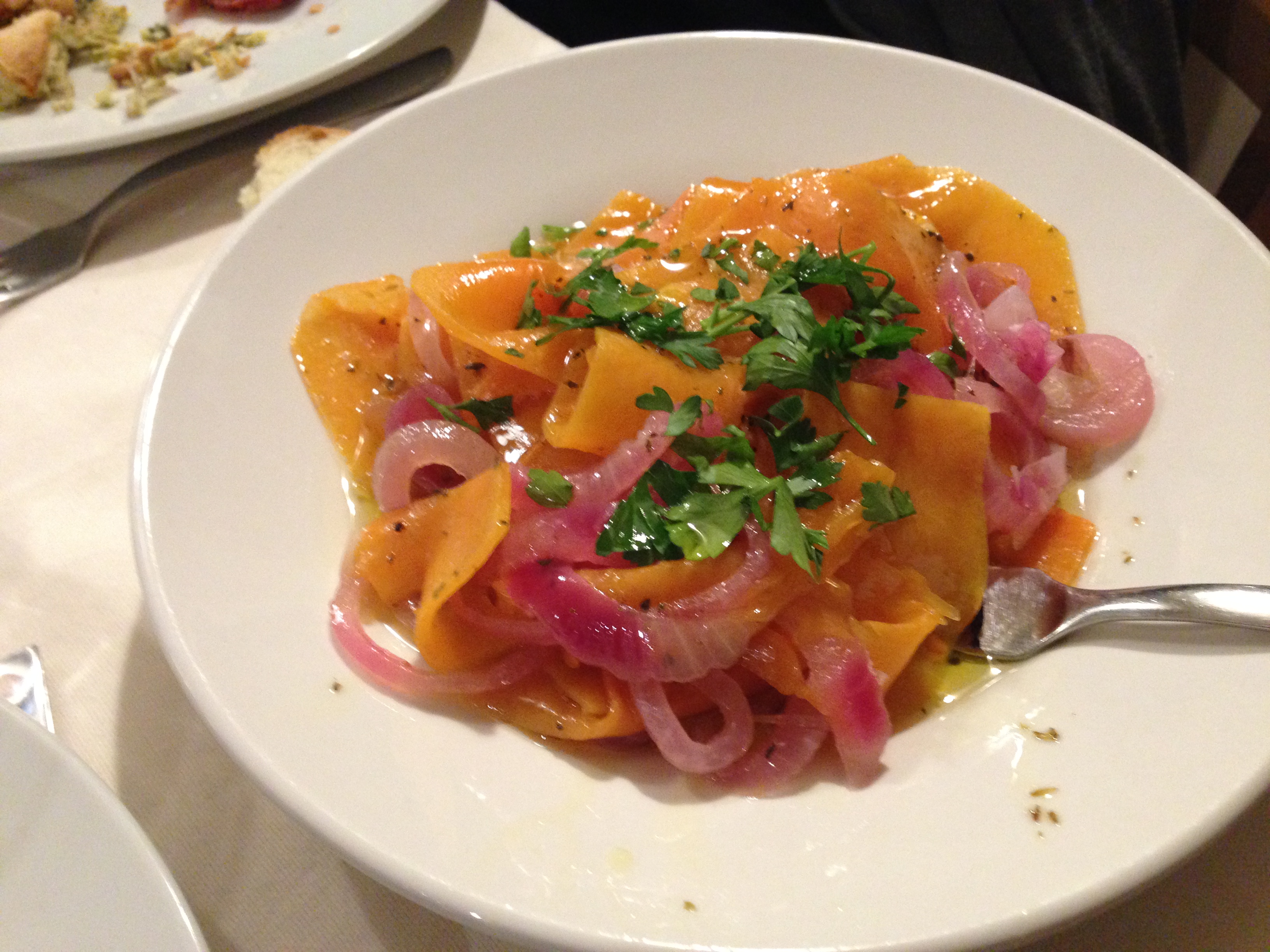 I tavoli sono apparecchiati con cura e semplicità e poi arriva lui, Pasquale, il proprietario. Poco più che quarantenne, alto, serio, consapevole del proprio fascino, molto riservato, ma poi cordiale. Con dolcezza ci svela che il nome del locale rende omaggio ad una persona cara di famiglia, è un soprannome di cui non svela il significato, ma che rende ancor più avvolgente il posto, si percepisce il rispetto per le radici e questo lo trovo meraviglioso per chi sceglie di fare questo mestiere. Con fare sicuro e divertito, Pasquale cambia argomento e ci spiega come funziona il suo locale, si parte con una serie di antipasti, preparati solo con prodotti locali, km0, di stagione, ai quali è praticamente impossibile dire di no.