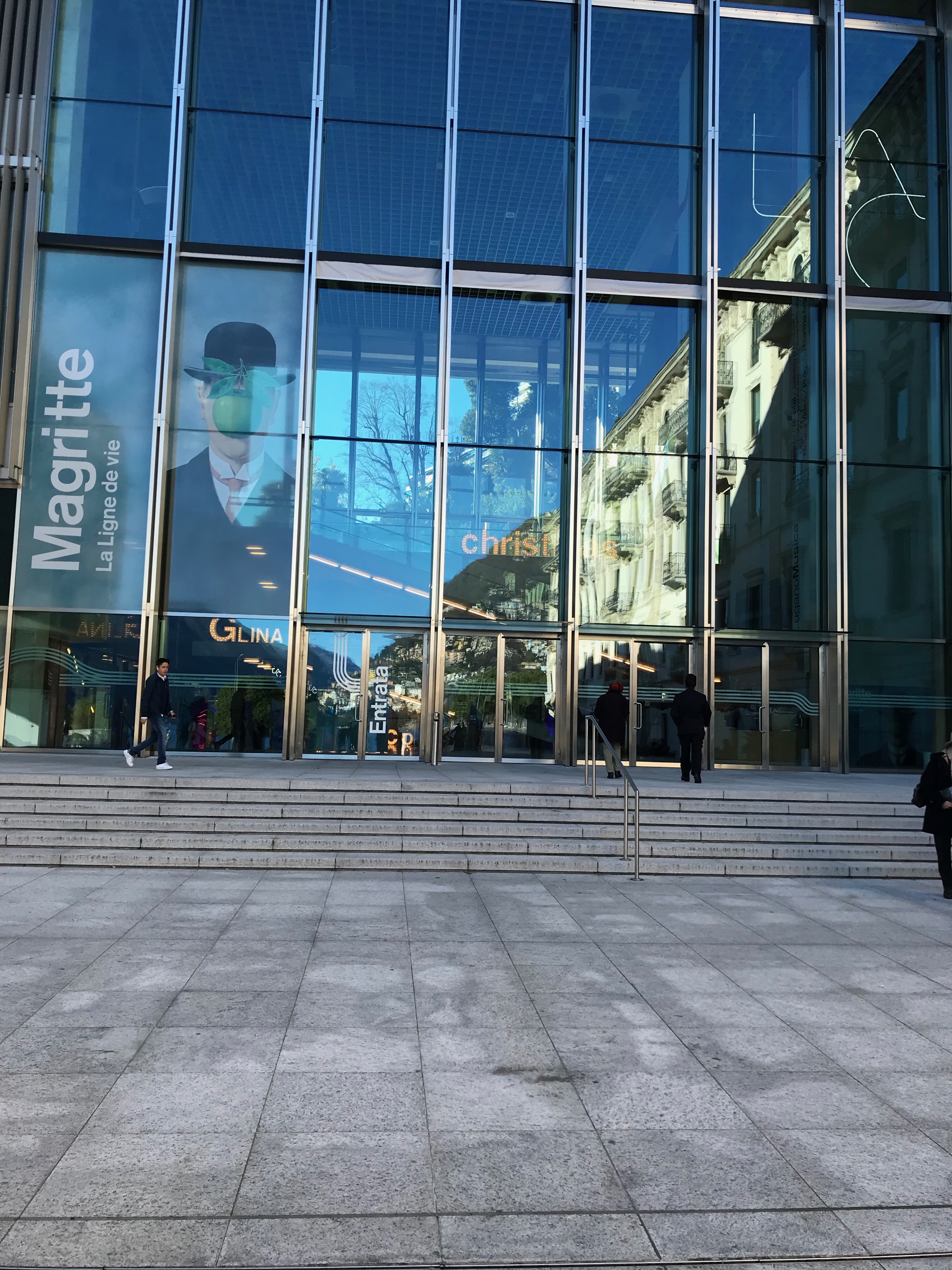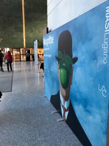 Qui, come fortemente voluto dagli organizzatori della mostra, è direttamente Magritte a svelare i significati delle sue opere. Per me è stato bellissimo e molto emozionante poter “toccare” con gli occhi le sue tele, respirare l’odore della carta su cui un tempo aveva impresso i suoi schizzi. Non conoscevo il (Museo d’arte della Svizzera italiana) Museo MASI Lugano che l’ha ospitata, e questo purtroppo la dice lunga sugli anni che mi separano dalla mia ultima visita. Che dire, sono rimasta stupita e rapita dalla bellezza della costruzione, un edificio moderno che affaccia direttamente sul lago e che mi rapisce già dall’ingresso che dà sulla piazza.